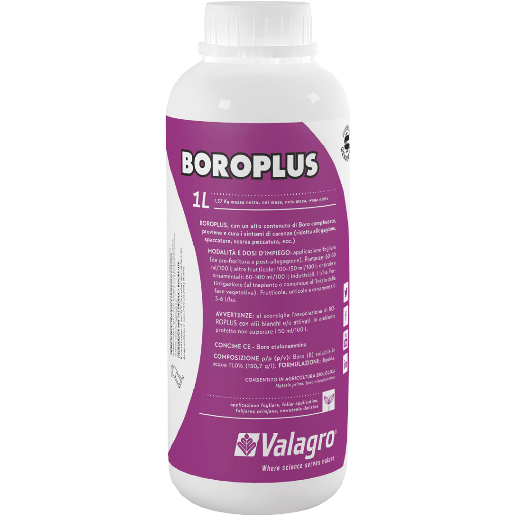 Eficaz en la prevención de la deficiencia de Boro. Sin fitotoxicidad, incluso para las aplicaciones más tempranas. Se puede mezclar con los productos foliares más frecuentes.
